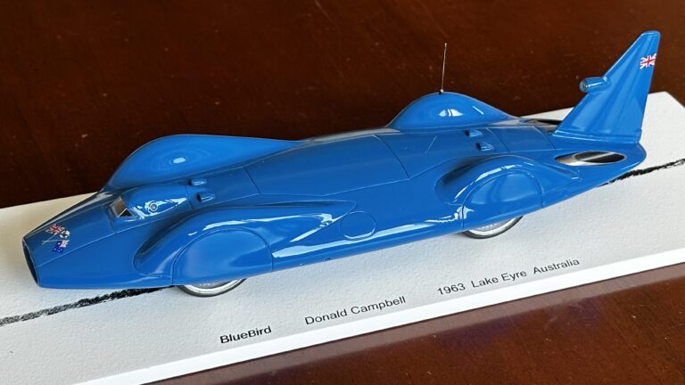 For our generation, this was long the world’s fastest car we knew of in our childhood: the record-holder from 1970 to 1983, the Blue Flame, clocking 1002 km/h. Not to be confused with a paraffin stove. I’ve finally got my hands on a model of this coveted vehicle.