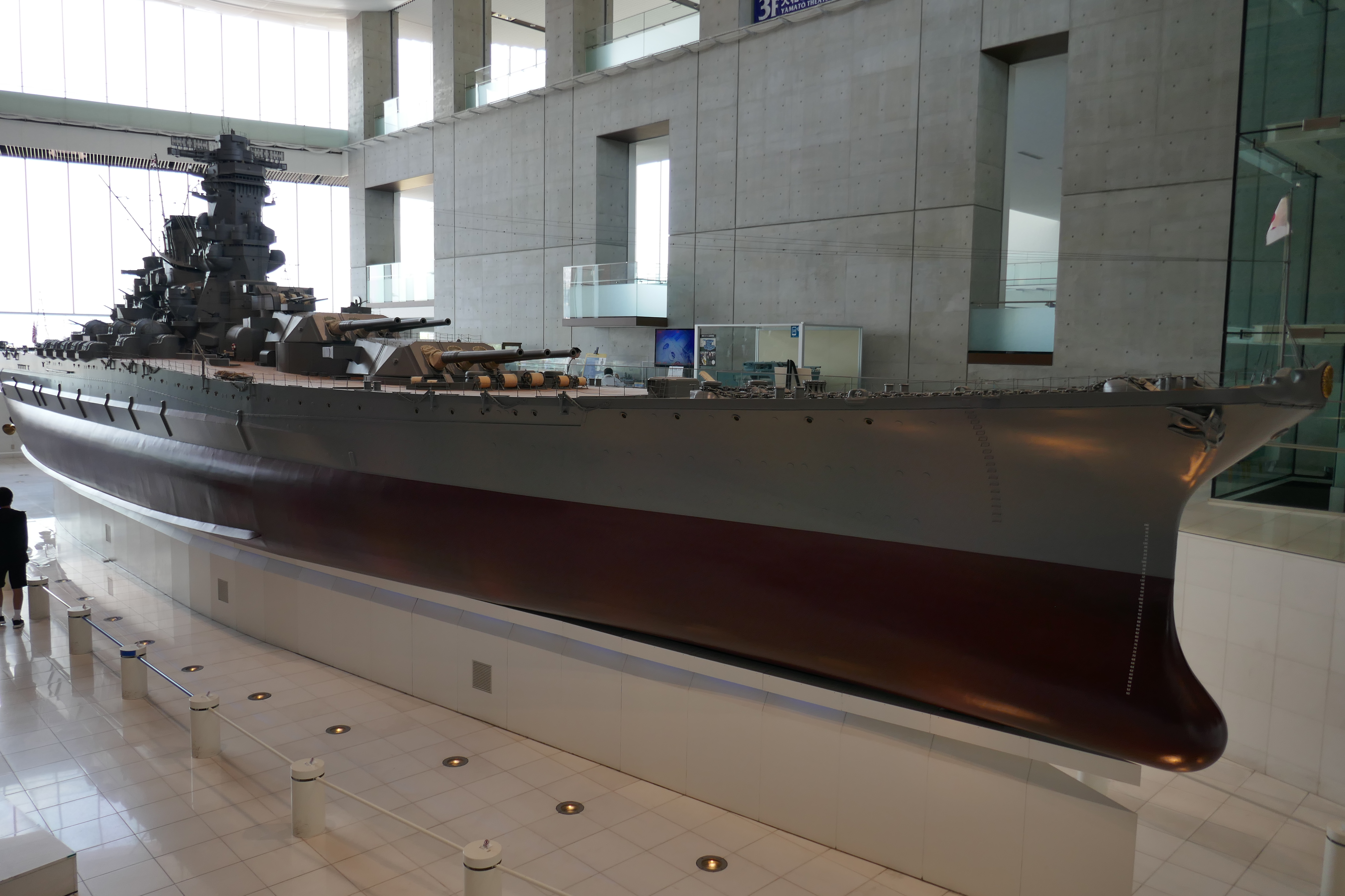 朝は早くから呉へ移動。三ッ蔵や辰川バス停等回り、ヤマトミュージアム前で降ろしてもらう。2グループに分かれて2人だけでヤマト鑑賞。館員の方に訊けば何でも返事が返ってくる頼もしさ。気がつくと1/10大和の周りを3周もしている。時間がなくて文化史的なところは駆け足で。沈没した大和のCGによる見事な再現で分かる破壊の凄まじさに戦慄。同行のSは特攻嫌い。回天などと、その設計から人を弾として使う発想の狂気。しかし兵器であっても零戦の星型エンジンの空冷フィンの鋳造技術の見事さには見惚れてしまう技術屋の業の深さ。残った僅かな時間で鉄のクジラの内部を駆け抜け、大戦時と全く違う現代潜水艦の余裕ある空間、そのサイズに感心。